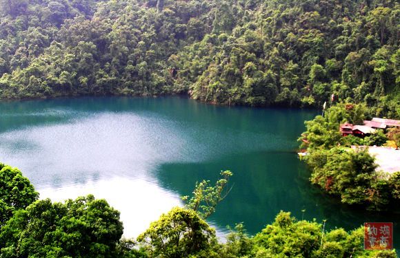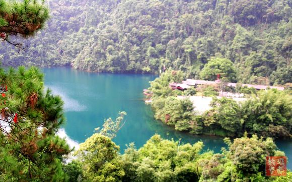 俯瞰碧平如镜的.蓝滢滢的鼎湖水: