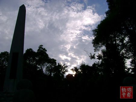 今天下午我们三人去爬山吸氧,大雨倾盆在正气亭躲雨,随意兄拿出相机,拍出了他眼中的岳麓山,笫一次拿起相机拍摄,能有如此的意境是很不错的了 他想表达的诗意般的画面让人感觉豁然开朗,青翠欲滴的峡谷透过夕阳的余辉,黄兴墓庐直矗蓝天更体现作者的情怀。望随意继续努力!我们期待着!