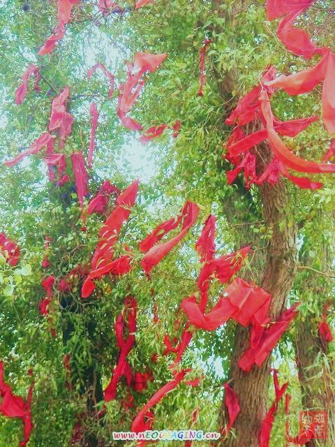 来这里的人们都把红绸系在神树上,许上自己的心愿!我也不敢违例,赶紧买了两条系在上面了! 一条许下为家人,一条许下为所有的朋友祈祷平安的心愿!