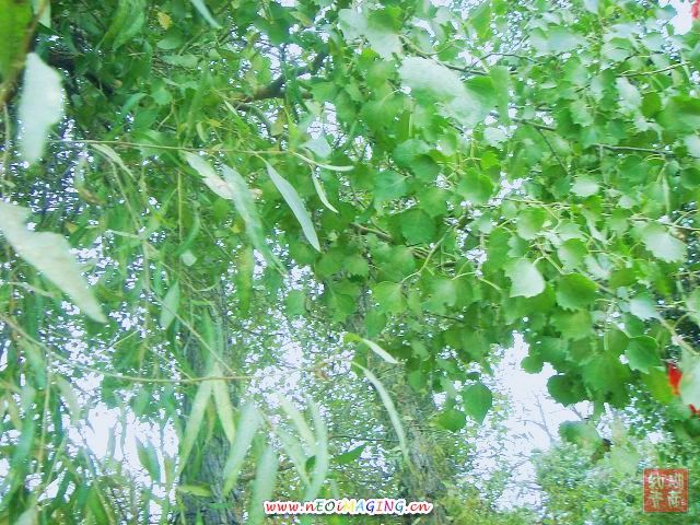 在一棵胡杨树叶有杨.柳.杏.枫.桃等多种叶型,而我只看到两种呢!