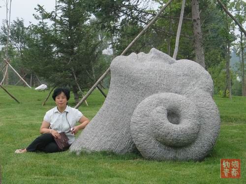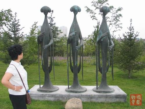 我去,是从会场里偷着跑出来的,教训有二:一是太匆忙,只看了几个钟头,真要看好,要安排一天;二是头天晚上要把相机充足电,好雕塑太多了,我没预计到,结果只照了进门左边的一点点(比后边的差),屏幕就不显示了,我坚持着瞎照了几张,有一张雕塑冒照到,只照了我婆婆的一只大脚.