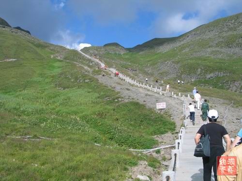 下面这张是上天池的阶梯,很平缓,1400级,但海拔较高,有3000来米,我爬起来很费劲,心脏有点憋得慌.上去了就没事了.