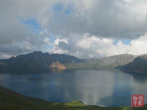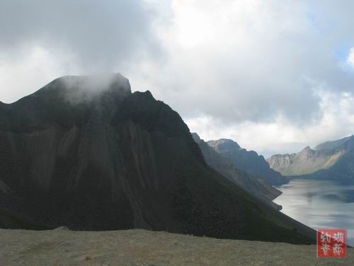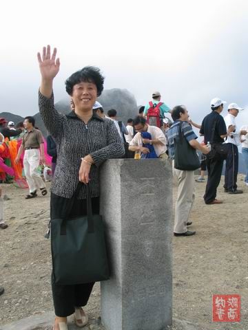 据导游讲,登长白山看天池,要运气好,有时山下艳阳高照,山上则阴云笼罩,甚至下雨下雪.天池湖面波平如镜,右边和对面是北朝鲜,看不到一个朝鲜人.有太阳时,并不冷,但时有凉风刮来,冷飕飕的.
