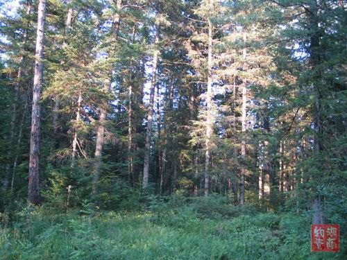 生死相依!奇怪,森林中到处是这种一棵松树\一棵白桦长在一起的景象.