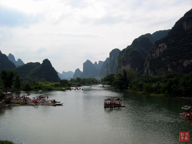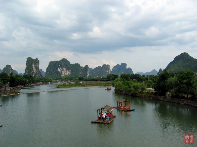 坐船到阳朔后已是下午三点,立即租自行车每人20元到十里画廊,正是拍片的黄金时段。帮同事们拍片间隙,抓紧拍了几付风景照。时间太匆促无法拍出当时的感受,望谅!