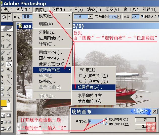 当然这里讲的“顺时针”与“2”度是针对这个例子而言,对别的图片要看具体情况。