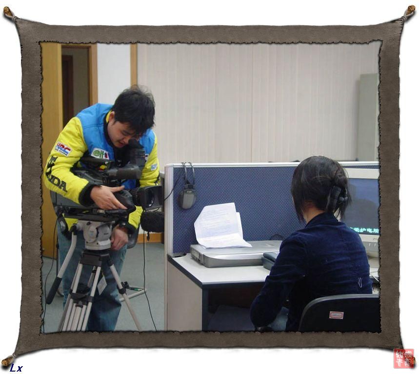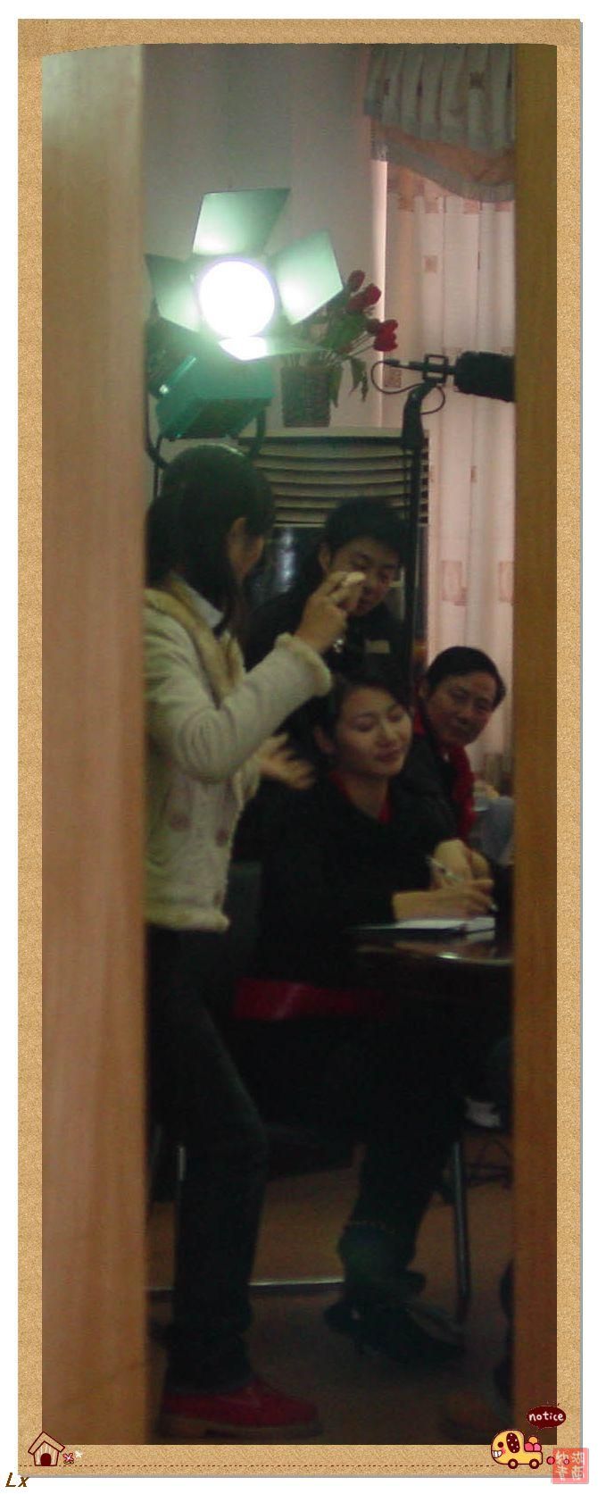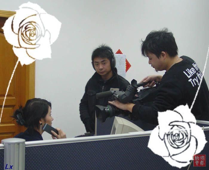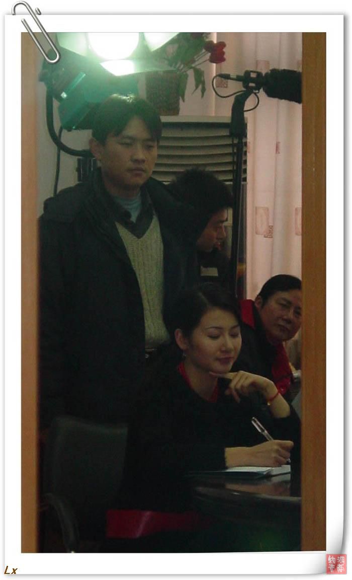 正愁没有时间拍PP,今天下午都市频道来了一个摄制小组,向我单位借用办公室,《欲望都市》栏目要在这里拍电视短剧的一个场景,都是二十来岁的小青年,导演摄像录音演员,个个时尚又干练,装备也精良;相比之下,我想起我们湖南知青网摄制DV,真的是小米加步枪哦!嗳嗳,好羡慕哟……也暗自庆幸这送上门的练手机会,赶紧拿出公司的相机拍起来……