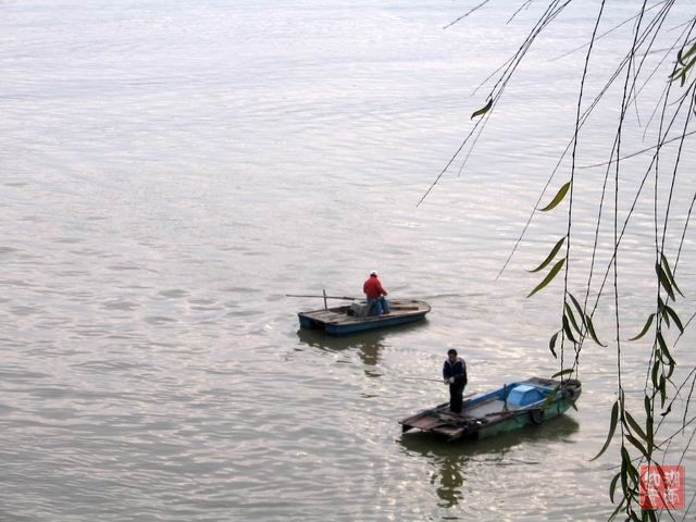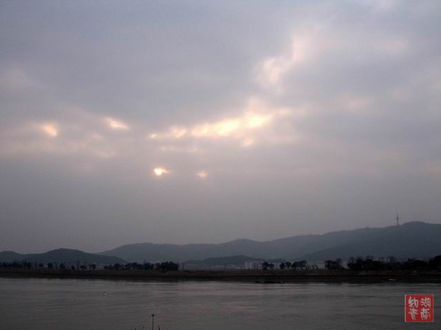 昨日下午有闲心到江边走走,虽天色不是很明朗,但看到的景色很美,拍了些照,因距离较远而相机焦距只有三倍变焦,故很明显照得不清楚不好,权当是构图练习吧!