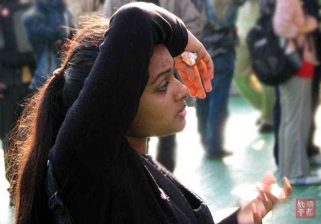 在香港海洋公园排队等中饭吃,不远处来了一群外国人(好象是阿拉伯人),可能是在找什么人,用相机拍下了几张。因公园中人多,背景用PS处理了一下。