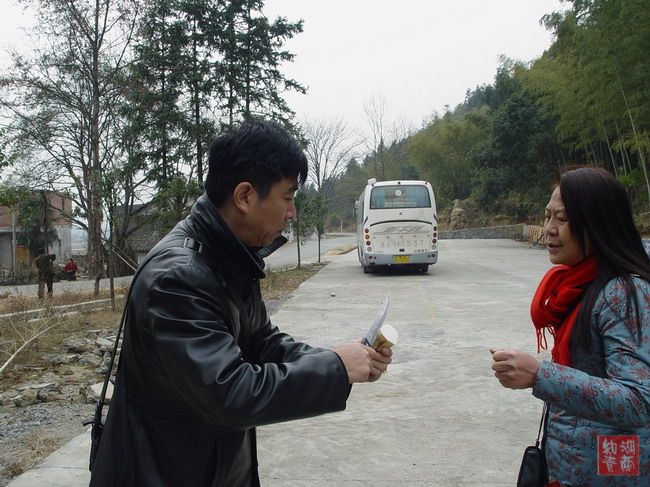 上甘棠风景太美了,小桥、流水、人家、古道,基本上保留着原始风貌。给城市森林禁锢了很久的两人玩心顿时大开。程总虽然冻的鼻子通红,但仍兴致勃勃的帮别人照给自己照,并欣然与昨晚的牌友合影,忙得不可开交。开始还和我们打着招呼,走着走着人不见了,小柯找了一圈,没影。我可急了:刚才我看见有一农家再摆喜酒,这么俊的帅哥,别是给人拉去作新郎了?再找!