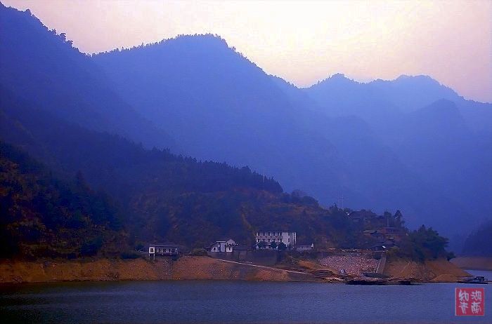 我没有随大家同行.2004年11月,我回来过一次.水库里似乎没有什么可拍摄的画面.何况,我更想去看看我曾住过的地方.那地方就在我们刚才路过的那个山谷.我侧转身,独自下了大坝,沿着我们刚才路过的那条简易公路,边走边注意路边的风景.说实在的,天气并不是很好,光线不很理想.没有迷人的逆光,也没有朝辉晚霞的渲染.加之正是寒冬季节,山中的树木色彩显得有些暗淡.我走走停停,几次举起相机,却又没按下快门.唉,假如这时有几个山里娃赶着牛群路过也好呵.2004年我在这山路上走着的时候,正好有几个山里娃放学回家,他们的手中撑着花花绿绿的雨伞,我在匆忙中,按动了快门.回到长沙家中一看,影像太虚了,且光线灰暗,只好删除了.那一天天气比今天还要糟,山中时有小雨,而且又是下午四五点钟……