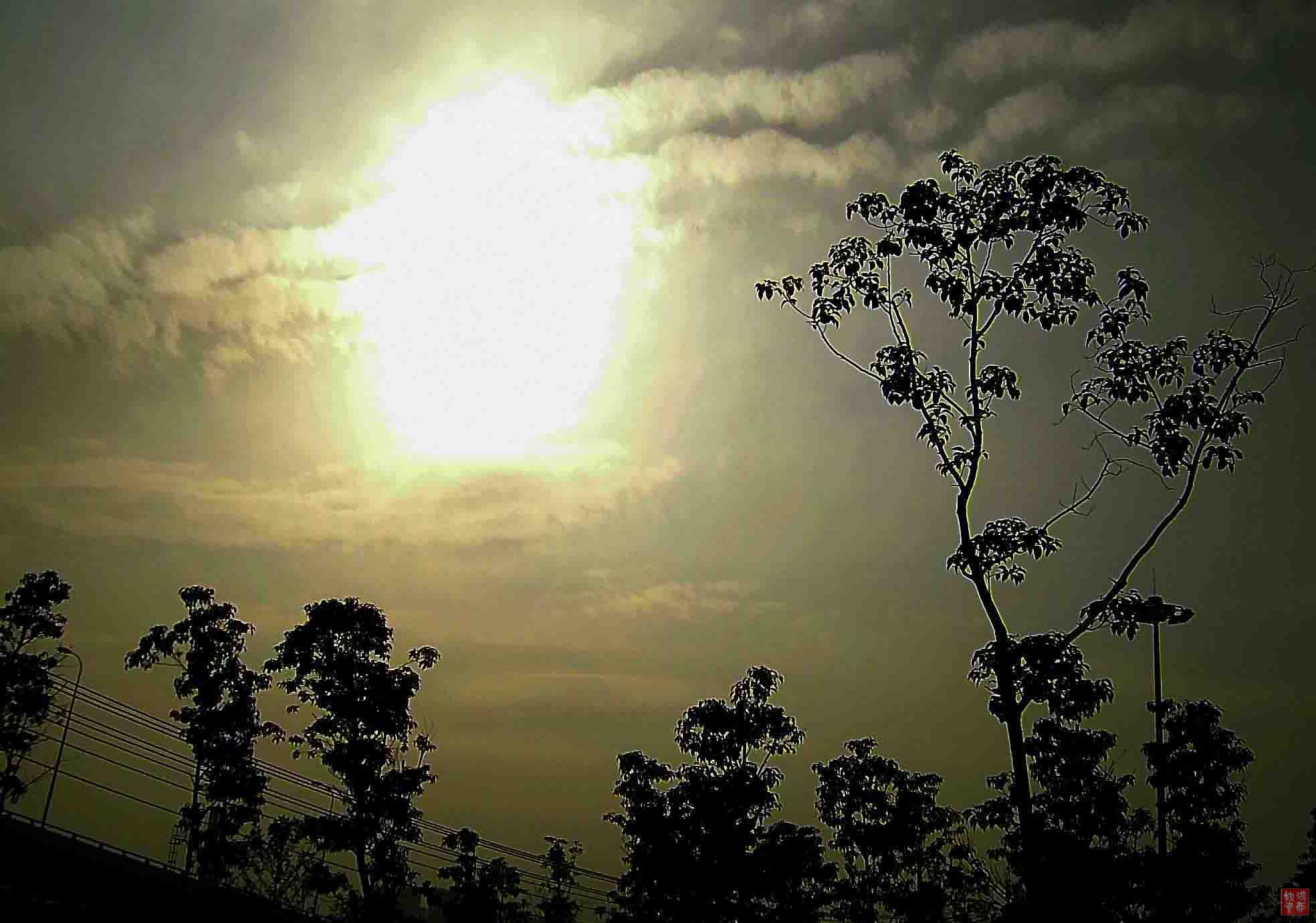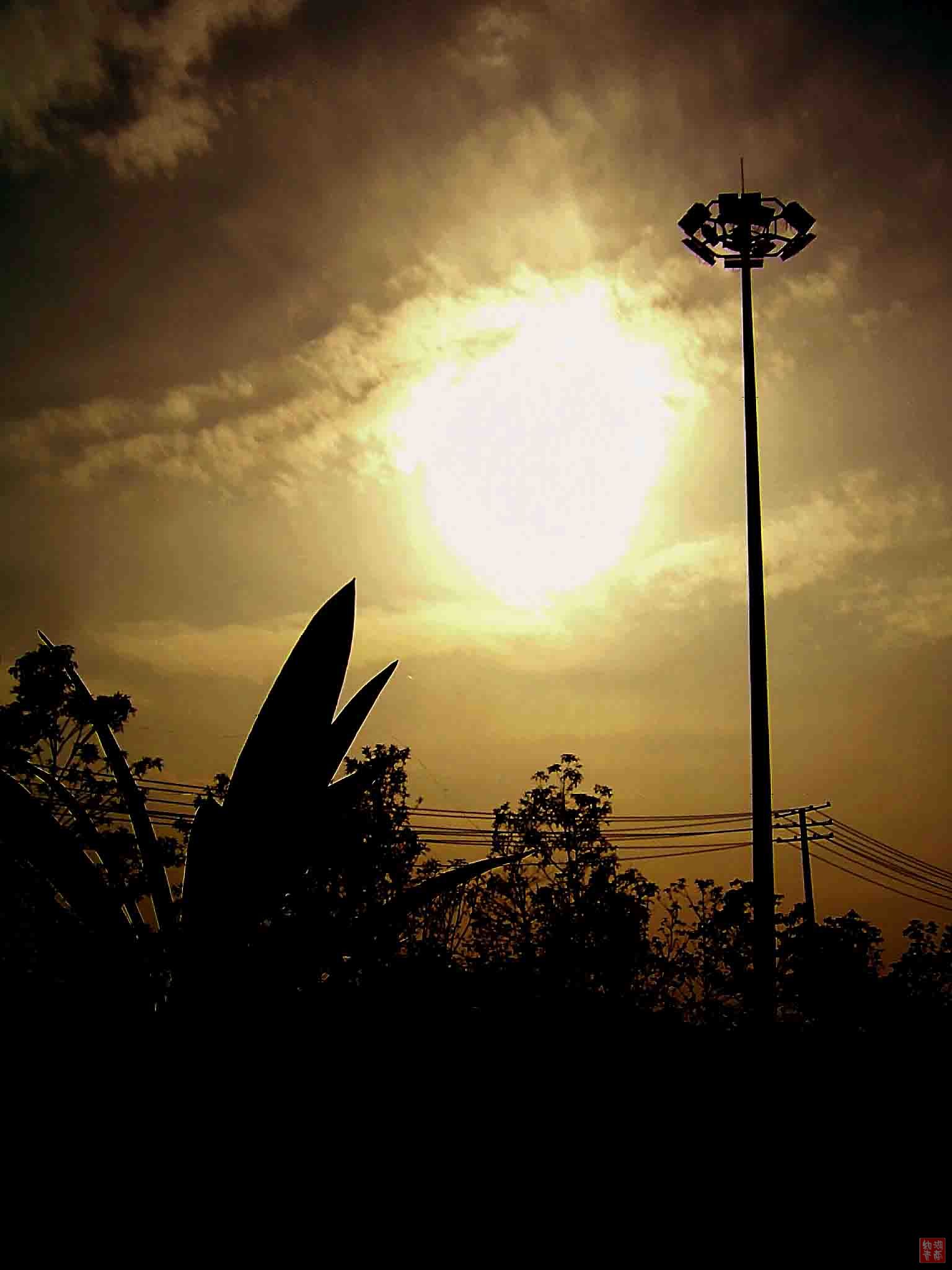 另外太阳太高?拍太阳小心不能什么时候都对着太阳拍,对机器的CCD很危险的。一般我拍太阳夏天下午6点半以前不太敢对着太阳,冬天也在5点半以后……看着大概不刺眼了才行。另外从图的意境出发,看着场景来定焦距,决定太阳的大小与位置……