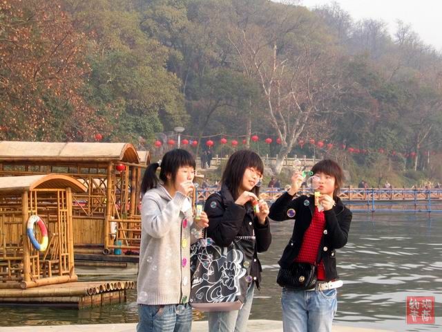 哈哈!今天和我先生从烈士公园过,看见你们了(因为你们有照片在网上),估计你们不认识我,所以没打招呼。喜欢第二张。觉得学生们吹泡泡的那张神态有味,只是背景多了,最后一张也不错,但人物要靠右一些,像倒数第二张一样。个人意见,不一定正确。