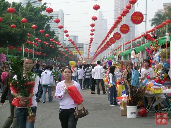 逛花市,一直是广东人过春节的“传统保留节目”, 广东人逛花市就像北方人逛庙会吃年夜饭一样重要,春节晚会可以不看,但花市不能不逛。为保留这一传统节目,深圳市自1980年起一直持续在春节前几天举办迎春花市,而且一年旺过一年。