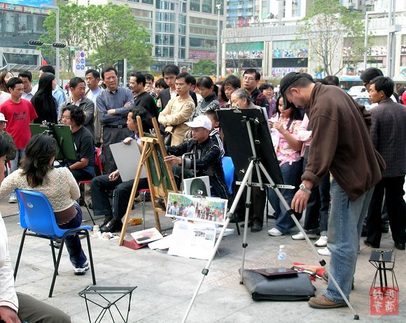 在节日的大街上活跃着这样一些年轻人,他们有的唱歌,有的唱戏,有的给人即席画像,有的跳街舞......为节日增加了色彩,给人们带来了欢乐。