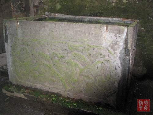 知道这是什么吗?防火用的贮水缸.用四块岩板拼成,上雕有精美的图案.据说是民国时候修房子时一起修的,至今还滴水不漏.