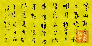 宋·陆游《题书斋联》 沈散思书 沈散思,字知玄、子肇,号舜耕布衣、半醒草堂主人。男,山东人,1958年生。为中国美术家协会会员、中国书法家协会会员、八大山人研究会常务理事、当代禅学画派研究会副会长、国家一级美术师。