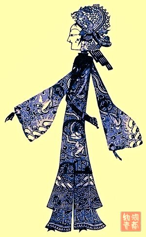 桩桩 民间皮影艺人称影人身子为“桩桩”。桩桩是由胸、腹、腿、大臂、小臂和手等十个部件组成。皮影的服饰与戏曲服饰基本相同,式样极为丰富。有龙袍、官衣、氅氅、袍子、裹身子、背剑以及马甲等。桩桩除个别特定人物和某些神怪是专用的外,大部分是通用的。只要在桩桩上换一个相应身份的头梢,就变成了另外一个人物。桩桩的服式、图案和颜色,是区分人物身份和贫富贵贱的重要标志。