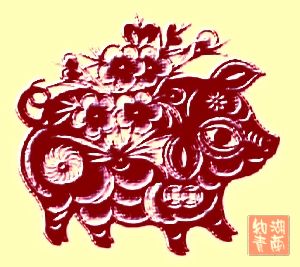 喜猪迎祥(剪纸)