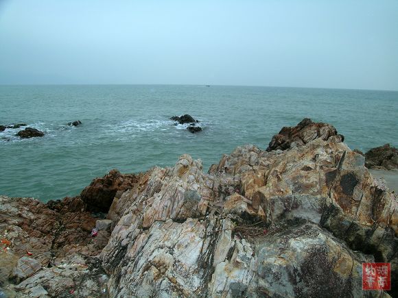 我站在大礁石上迎着海风看着眼前天海相间的灰色,任由凉凉的海风吹拂着,海浪撞在我脚下的礁石上,仿佛能感受到它的力量的巨大。突然,我觉得这阴天大风中的海才更宽广,才更象海,它比那丽日蓝天下平静、安怡的海更有一番动人的风韵。