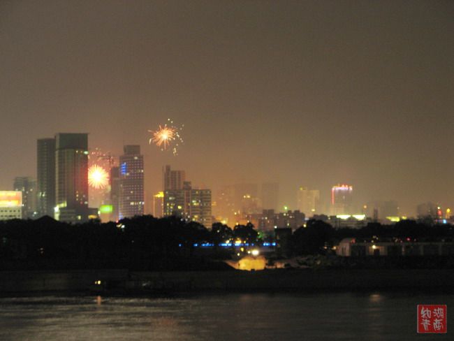 昨天是正月十五,正好桔子洲头晚上放焰火,我和同伴一起去拍焰火。
