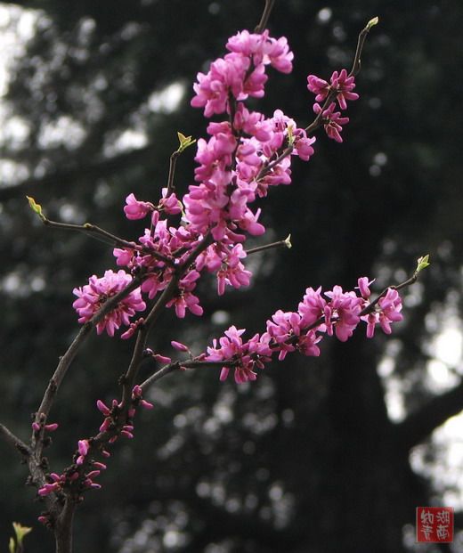 当然她们肯定是有名的,只是我不知道。希望知道的朋友指教。昨天乘公交车路过省图书馆,车窗外突然一亮,在那庄重、墨绿的松树丛中,闪出一抹桃红。回程时我在这里下车。原以为是桃花,走近一看却不是。不管她,漂亮就拍!不时有人过来问我这是什么花,我说我不知道,就是觉得她好看。有一个孩子说这是紫荆花,说他们课本上有。