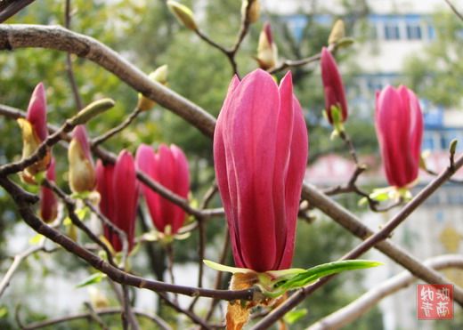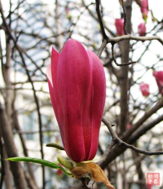 2,下面这个应该是叫“紫玉兰”了,同科的还有玉兰(也称白玉兰和木兰)和二乔玉兰。二乔玉兰即称为紫玉兰和白玉兰嫁接而来的。