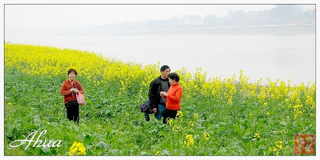 天老爷真的给面子,太阳不时的露一下脸!一大群爷爷奶奶级的色友到了湘江西岸的小河洲上,一大片油菜花真的黄得可爱!十五、六个老知青都掉到了花园中,点缀着成片的油菜花。不可想到的是,竞有六个人都穿上了红色的外衣,其中友情周末还是男士哦!好醒目啊!看来好有经验。看到老知青一个个仿佛回到了年轻时的样子,不由得用相机拍了下来......