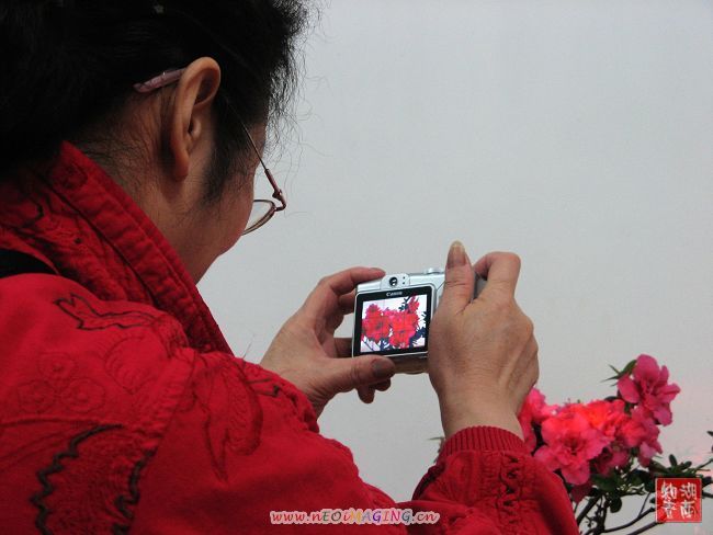 老知青好执着,好专注啊,火红的姐姐拍大红的花,红红火火好漂亮哦!