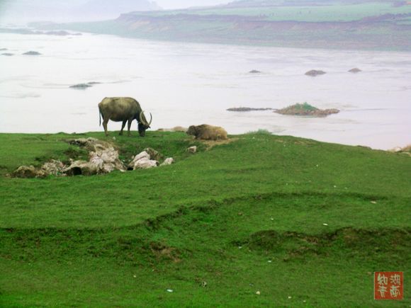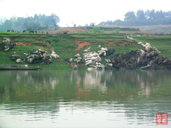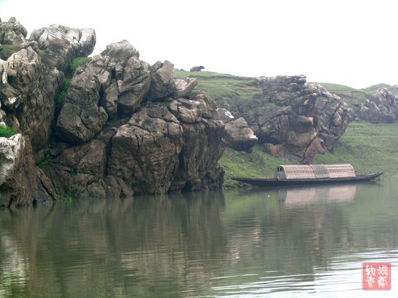 蓝天斑竹一回来就有美景好pp看了,我平素就喜欢看异石,这张照片的石头和映在水中的倒影,还有河边的小篷船,中间远处那小小的不知是牛还是像牛的石头,这一切都令人产生奇妙的遐想。欣赏了!