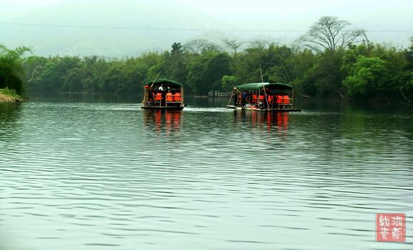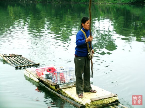 乘着竹排漂流,见到了水流清澈的香溪河水,这水好清啊,似乎真的无鱼..使人自然的联想起:“沧浪之水清兮可以濯我缨”的古诗。