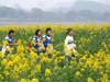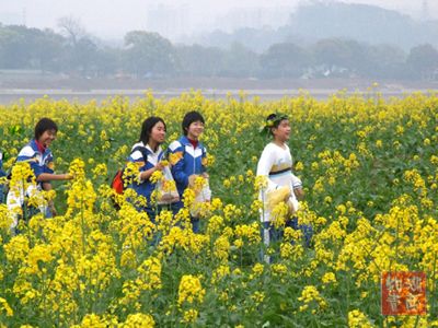 第二张是重新发表那张不够大的照片。久居城市,难得一见春天的油菜花,满目的金黄灿烂,延展至天的尽头;每一朵花都那么小,那么不起眼,但是组合在一块,足以震撼人心。恰巧有一队师大附中的学生走过,看到他们青春的笑意,欢快的脚步,不也像我们的当年。