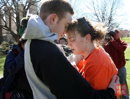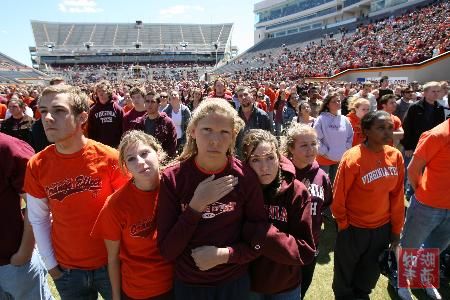 美国有关方面在举行仪式,悼念16日该校枪击事件中的遇难者。美国总统布什、弗吉尼亚州州长卡因以及美国有关□□官员和该校师生数千人参加了悼念活动。