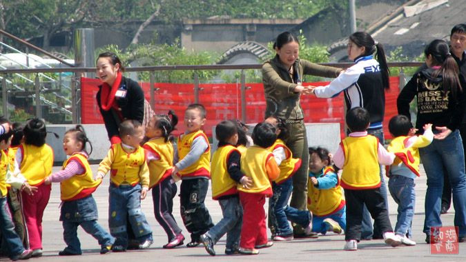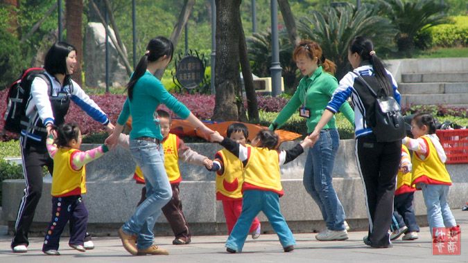 老师带着孩子们开始玩起来了,老师好象比孩子还多些?