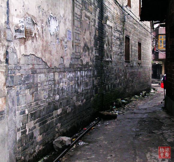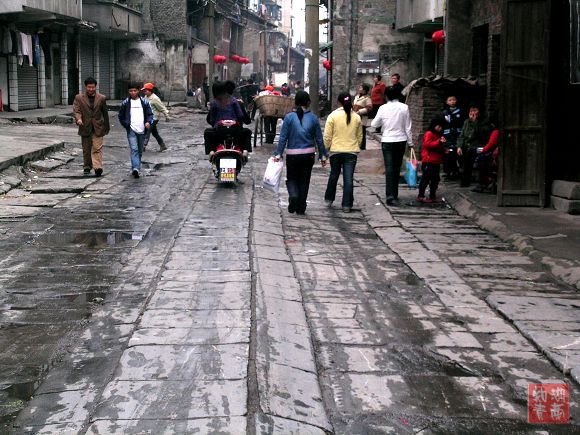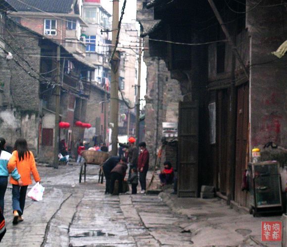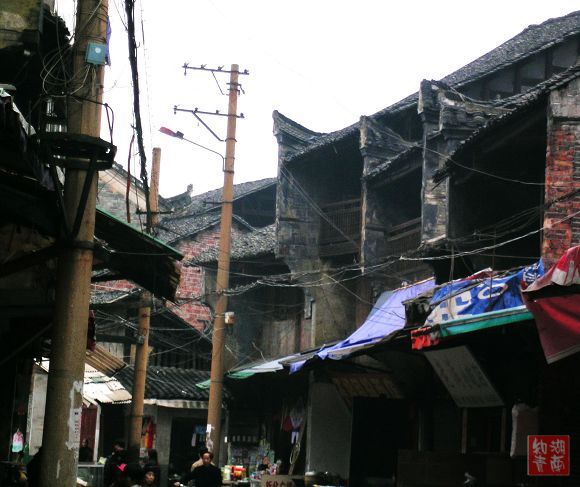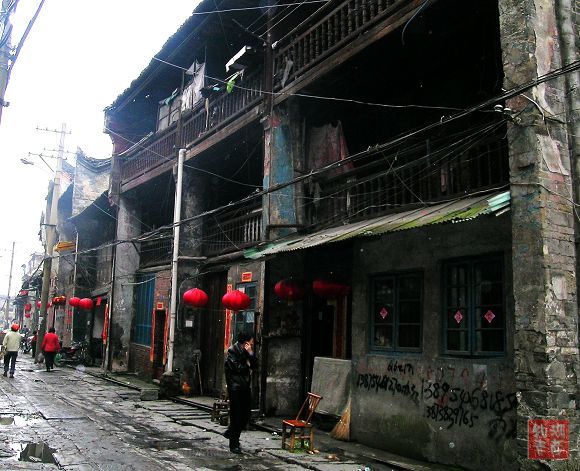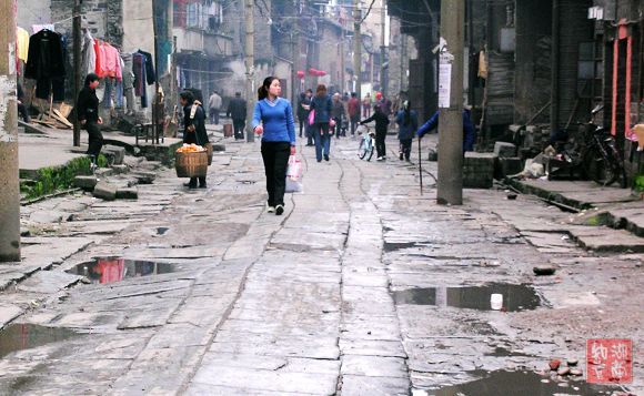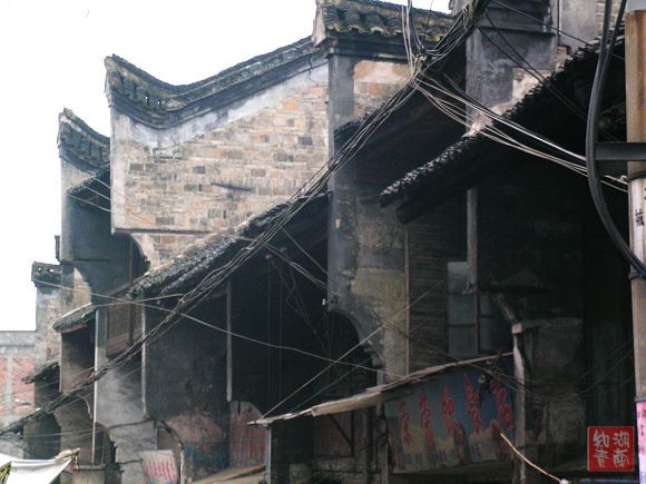 今天这千余米的街上,青石板铺就的路虽还厚实凝重,但也因年久失修而凸凹不平了。沿街的老房子没有钢筋水泥,没有布满玻璃幕墙的高楼大厦,大都是二层楼高的民居,且已显破败。但它们却在默默地承载着古城厚重历史,坚持着过往的记忆.