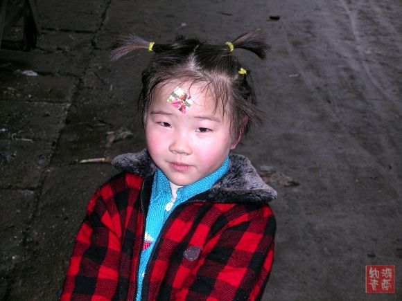 这小女孩额头上贴着张小花纸片,跟着我走了大半条街: