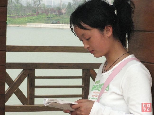 少女在认真学习
