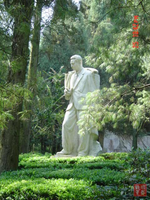 | 在苍松翠柏间,伫立着聂耳的塑像。他在低头吟唱,或是在沉思…… |