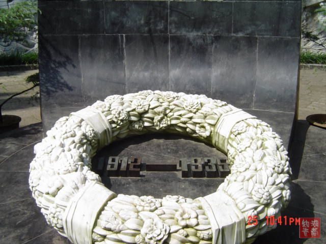 | 墓碑下的白色大理石雕刻的花环中刻着1912-1935,墓主是那年轻啊! |