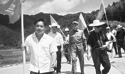 据了解,石峰村位于永安西南45公里处的小陶镇,距离小陶镇11公里,是一个四面环山的狭长盆地,2005年冬刚修通水泥公路。同样,马洪村也很偏僻。这些地方怎么会有这么多的红军标语呢?带着这个问题,记者继续走访。 “我9岁那年,看到红军到过我们村。”石峰村81岁的村民管灶龙肯定地告诉记者。 <--NEWSZW_HZH_BEGIN--><--NEWSZW_HZH_END--> “村里当时到处是红军,他们大部分住在老乡家里。”今年90岁的冯秀银,补充了管灶龙的说法。 她记得,18岁那年,她的家里就住着一个左眼有眼疾的红军连长,许多战士来找她补衣服。 根据石峰村几位老人回忆,1934年前后,曾有大量路过的红军在此宿营,其中包括红军第七军团(北上抗日先遣队)。他们记得,红军在附近停留的一段时间里,在村里主要做三件事,一是镇压村里的一些劣绅和地头蛇;二是没收地主们的粮食,分给村民;三是宣传穷人翻身闹革命的道理。他们记得,标语就是那个时期留下的。 据了解,在土地革命战争时期,小陶镇一带是中央苏区边缘的重要游击区。1934年中央红军长征之前,为了调动和牵制 国民党军队,以减轻对中央根据地的压力,中共中央和中革军委派遣中国工农红军北上抗日先遣队(红七军团)北上,于7月6日从瑞金出发,经福建长汀、连城、永安、大田、尤溪等地,渡过闽江北上抗日。红七军团和掩护其北上的红九军团均从石峰经过,红九军团沿原路返回时,还在石峰宿营。 关于红七军团行动的目的,朱德后来对粟裕说:红军主力是准备退却,派先遣队去做个引子,不是要北上,而是要南下,也就是中央红军主力从中央苏区西南部进行战略转移长征。因此,北上抗日先遣队实际上是长征先遣队。 “这些史实,都有资料作证。” 在石峰村,80岁的老人吴盛隆打开了一本由永安市委党史办编写的《永安土地革命时期史存录》(又称《燕江红旗》),告诉记者。 “石峰村等地发现红军标语的消息传出后,引起了福建当地党史研究专家的重视。他们实地考察后认为,这是研究红军北上抗日的民间活标本。”永安媒体同行告诉记者。 当年鏖战激急 “发现”当地大量的红军标语后,永安有关人士经过走访当地群众,对资料进行进一步挖掘、整理,又“还原”了一段鲜为人知的历史:在当年红军途经永安时,石峰村及其附近的山野上曾先后发生过多次激战。 据永安市党史研究室编写的《燕江红旗》记载,发生在石峰村附近的战役,是1934年8月12日,距离石峰村2公里和5公里左右的“白粉山战斗”和“石峰峡衙岭战役”。这两场发生在同一天里的战争,十分惨烈,红军全歼敌军一个营,活捉了敌营长,但也伤亡300多人。 此外,附近的大陶洋矮岭和大行山也进行了高地争夺战,敌我双方伤亡人数都在500人以上。 这些战斗,在新华通讯社的前身--中华通讯社主办的《红色中华》第227期中也有报道:1934年8月12日,敌约两个团向石坊(注:也就是现在的石峰,战斗地点在石峰峡衙岭)的我红军部队进攻,我红军部队与敌激战约三、四小时,结果敌被我军全部击溃,敌四十九□第一营营长梁振文被我活捉,并俘连排以下20余人,缴长短枪20余枝。 翻阅《燕江红旗》,可以看到如下记载:(石峰白粉之战)“敌军另一个连士兵抄小路,爬上红军侧背后的白粉山头,架三挺机关枪向行进中的红军战士疯狂扫射。红军伤亡惨重,被迫退回衙岭北侧。与此同时,敌军从桐林方向向石峰水口山上发射迫击炮,但没有伤到人。战斗从上午十点开始,敌我双方都派了增援部队,一直激战到下午三点左右结束。” 据《燕江红旗》介绍及相关党史资料介绍,发生在小陶石峰的战斗是由红七军团北上抗日引出的一场中央苏区保卫战。小陶战斗之后,敌两个师由东线进攻长汀。红一军团在长汀和连城交界的温坊,消灭了敌人一旅又一团兵力,取得了红军长征前夕对敌反击战的重大胜利。此后,留守在长汀松毛岭的红九军团和红二十四师打响了红军长征前夕最后一战--松毛岭阻击战。1934年10月初,红一军团、红一军团随中央红军踏上了千难万险的长征之路。 “红军离开后,我哥哥吴盛兴路过附近往小陶方向约10余米时,看到了当时的小路边上横七竖八躺着7个红军烈士的遗体。” 吴盛隆老人回忆,几年后当他到附近村子念书时,“在那里看到了白骨,遗体腐烂了,但脚上的草鞋和绑腿还没有烂。当时,我都哭了”。 吴盛隆还记得,红军撤退前,曾匆匆掩埋了一些牺牲战友的遗体。他隐隐约约记得地点有3处。他说:“当时天气很热,红军烈士的遗体很快产生了异味。一些村民出了一些钱请土工把烈士的遗体迁走了。” 吴盛隆的说法得到了管灶龙的证实,他也记得村里当时确实有人捐款请人把红军烈士安葬。