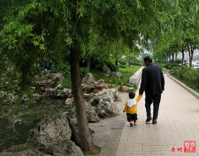 正在水池边拍照,有祖孙俩用他们自己熟悉的语言交谈着从我的身后走过,我转过来对着他们拍了一张后,却久久地注视着他们的背影,看着这幸福的祖孙俩走在长满新芽的垂柳下,“老树新芽”这个题目从头脑中冒了出来。新芽是树的生命的延续、孙子也是老人生命的延续哦!我离这样的日子可能还有三五年,正在期待着这一天的到来……。
