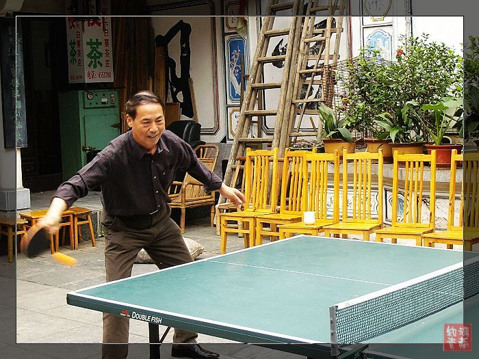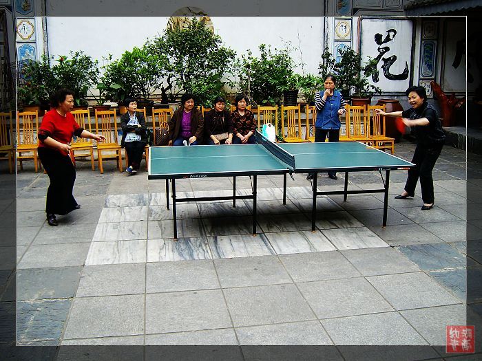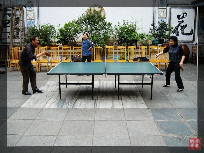 乒乓球男女左右对战(注意:女将是左手打球)。