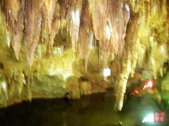 买好门票(每人价68元),我们进入洞里,洞内石笋石钟乳姿态各异,更有峡谷云天、哪吒出世、玉皇天宫、水中金山、远古河床五大溶洞景观之绝。