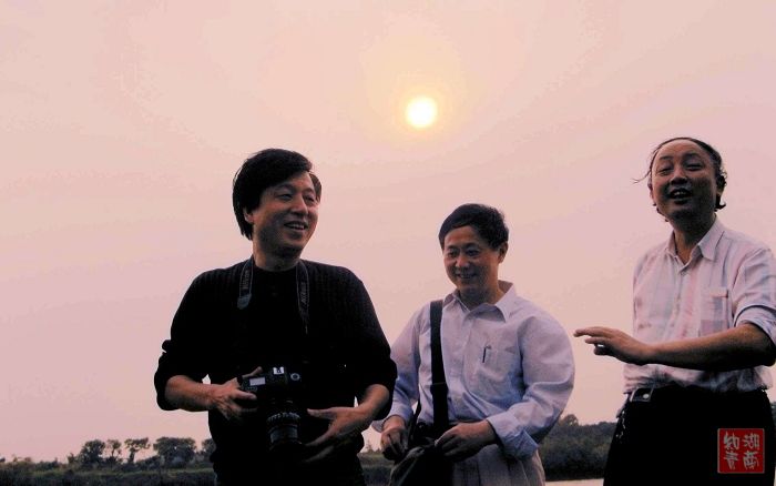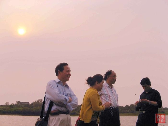 (虚拟台词)牛管挥臂即兴朗诵:"啊,夕阳无限好,极目湖天夕照明,湖水尽染,千山红了....."