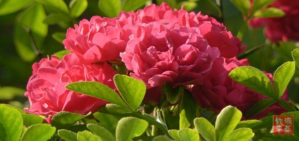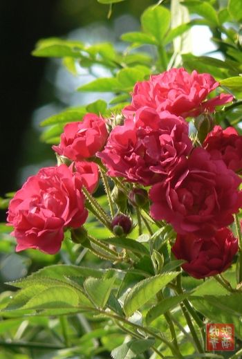 ②七姊妹(十姐妹花),叶较大,重瓣,常六七朵合成扁伞花序;