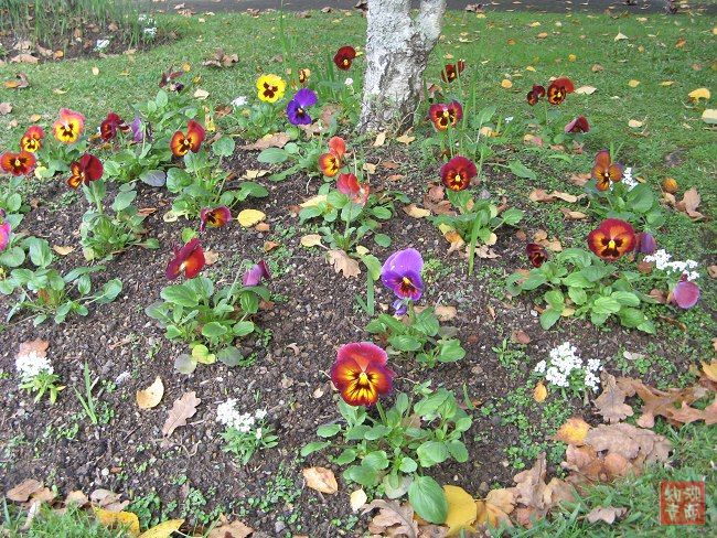 门前树下一堆花,好像是一些洋人的面孔,记得不知是哪位网友也曾发过类似照片?