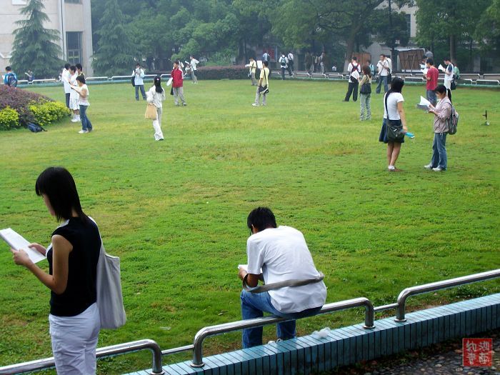 校园晨读(今天是阴天,光线不好,pp的效果不理想,权当和蓝天斑竹凑凑热闹吧)。