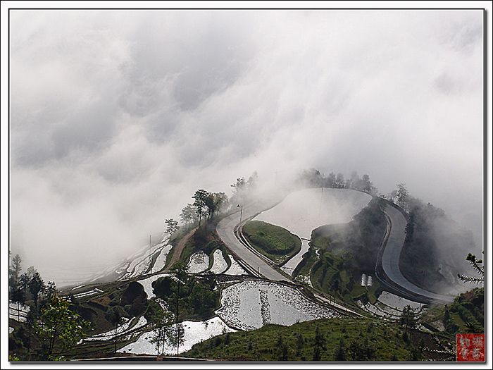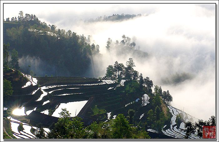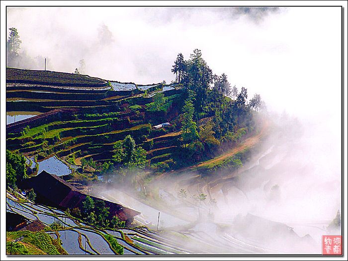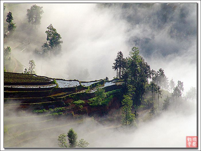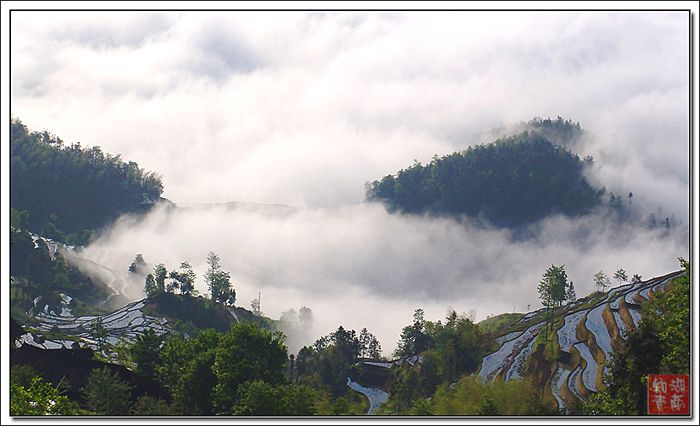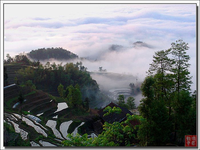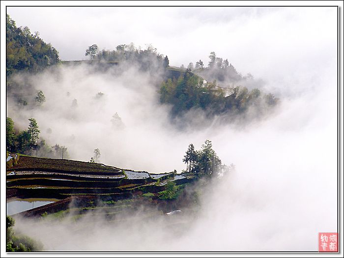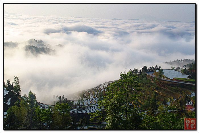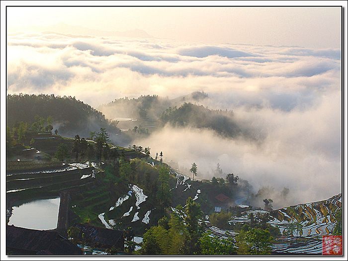 洁白的云海,清新的早晨,如画的梯田,谧静的农舍。没有喧嚣和浮华,没有无穷的欲壑,心该是怎样的舒坦!