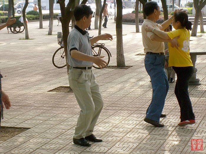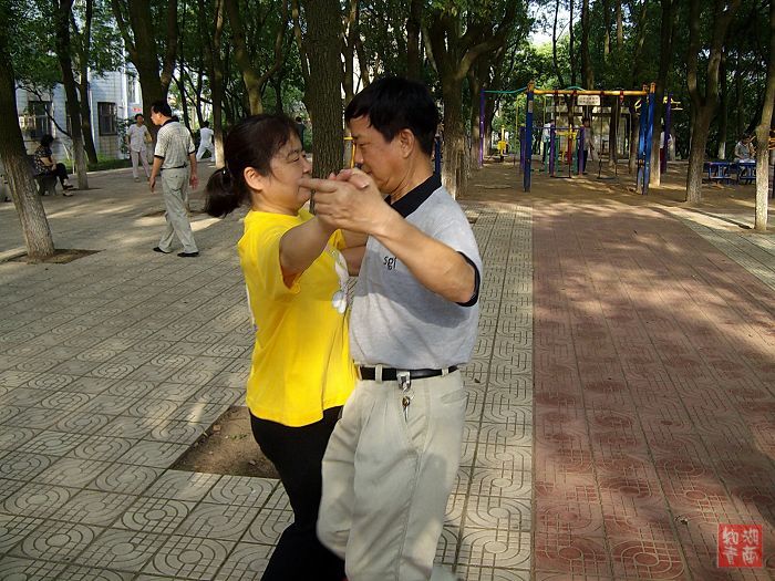 终于被洁屏发现了,为了方便我拍照,他们立即大方而又熟练地跳起了慢三,我于是再抓紧拍了几张,心中暗暗祝福他们永葆青春活力,健康幸福!
