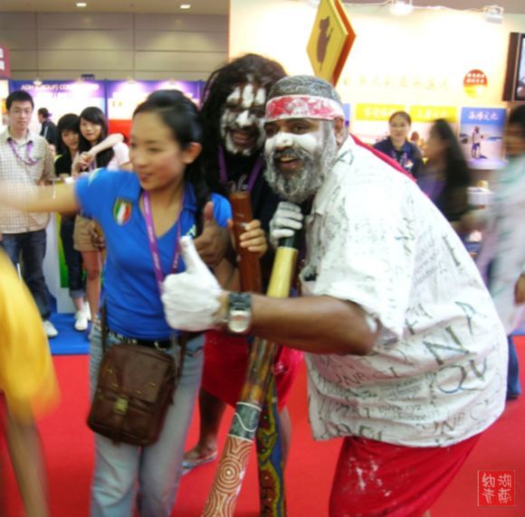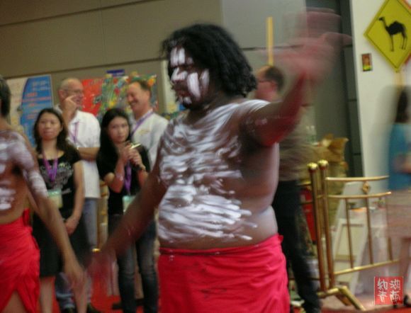 来自澳大利亚的土著舞蹈表演团在展会中的演出充满澳大利亚风情: